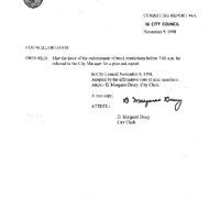 - A communication from Councillor Davis, Chair of the Traffic and Transportation Committee, for a meeting held on October 21, 1998 for the purpose of discussing cordon counts and hazardous cargo issues.