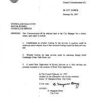 - Communication was received from Robert Hall, 364 Rindge Avenue, regarding funding for additional services for the youth, elderly and handicapped residents in the Fresh Pond Neighborhood.