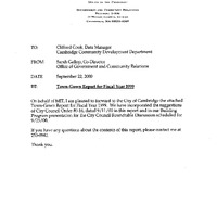 - A communciation was reveived from Sarah Gallop, MIT, Co-Director, Office of Government and Community Relations, transmitting the Town-Gown Report for Fiscal Year 1999.