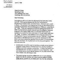 - A communication was received from Elie Yarden, The Cambridgeport Neighborhood Initiative (CNI) Co-Chairs, transmitting an update on a series of meetings between Spaulding & Slye, examining neighborhood traffic concerns resulting from a proposed 577-car garage at 784 Memorial Drive.