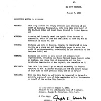 - C.W.J. Sullivan re: resolutions on the death of Socrates Toulopoulos, owner of the Newtowne Grill & Steak House.
