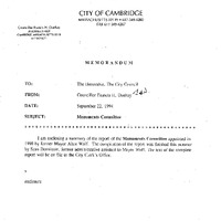- Communication from Councillor Duehay regarding the Monument Committee.