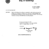 - Committee Report from Councillor Jim Braude, Chair of the Housing Committee, for a meeting held on October 4, 2001 for the purpose of receiving an update on affordable home ownership programs.