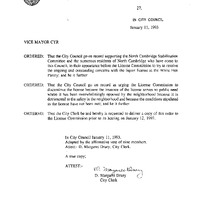 - Comm. from Richard D. Clarey North Cambridge Stabilization Committee, regarding the license issued to White Hen Pantry.