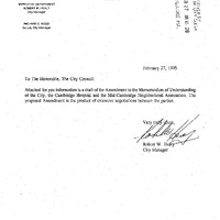 - DRAFT of the Amendment to the Memorandum of Understanding of the City, The Cambridge Hospital and the Mid-Cambridge Neighborhood Association.