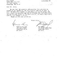 - Petition was received from Rebecca Folkman and Amy Nadel et al., protesting the public art project planned for the public meadow at the Weir House site in the Fresh Pond Reservation.