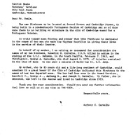 - Communication from Anthony G. Carvalho re: to the new firehouse to be May 16, 1977 located at Second and Cambridge Streets