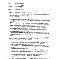 - Communication from Amy Squire dated November 6, 2000 re: Analysis of Public Input from Neighborhood Meetings