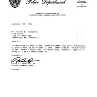 - Communication received from Daryl Janes, 50A J.F.K. Street, requesting a hearing before the City Council regarding an incident in the area of 59 J.F.K. Street on July 26 and 27, 1991.