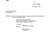 - Vice Mayor Reeves M. Wolf resolutions to be prepared on the death of Darnley D. Innis.