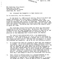 - Comm. from William H. Noble, Sec., Cambridge Tenants Union, recording the CTU in opposition to an order introduced by Councillor Duehay & Vice-Mayor Wolf on April 11, 9188 relative to a proposal for a new exemption in Chapter 36 fo the Mass. General Laws concerning rent control.
