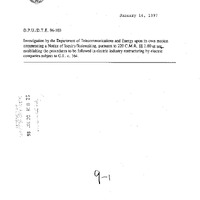 - Communication was received from Department of PUblic Utilities, dated January 16, 1998, regarding the investigation by the Department of Telecommunications and Energy.