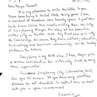 - A communication transmitting a letter from Mayor Sheila Doyle Russell regarding Anqing Sister-City Proposal.