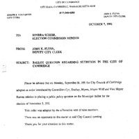 - Councillor Cyr re: non-binding public policy question be placed on the Nov. 5, 1991 ballot re: Cambridge Food Policy.