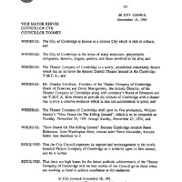 - Vice Mayor Reeves Toomey resolutions on the new Theater Company of Cambridge.