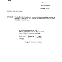 - Councillor Sullivan resolutions to be prepared on the death of Frank J. Winn.