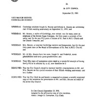 - Vice Mayor Reeves resolutions on the 50th Wedding anniversary of Joseph G. and Johnnie L. Bourne.