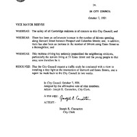 - Vice Mayor Reeves re: traffic study of Harvard and Essex Streets.