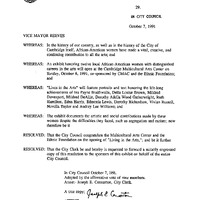 - Vice Mayor Reeves resolutions on exhibit entitled "Living in the Arts".