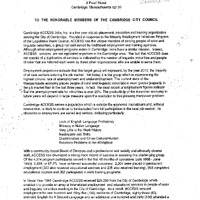 - Comm. from Cambridge Access Jobs, Inc., together with a petition signed by Cambridge residents in support to continue funding for Cambridge Access Jobs, Inc.