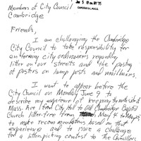 - Comm. from Ted Moynahan re: enforcing the litter ordinance of the City of Cambridge.