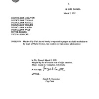 - Councillor Sullivan M Reeves Cyr Walf Duehay Walsh Russell Toomey resolutions to be prepared on the death of Walter Conlon.