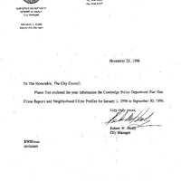 - Cambridge Police Department Part One Crime Report and Neighborhood Crime Profile for 1/1/96 to 9/30/96.