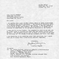 - Petition from residents of Arrow & Bow St. relative to disturbance created by patrons of Charlie's Place on Bow St.
