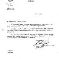 - A communication was received Donna Lopes Interim Deputy City Clerk, a report from Councillor Davis, Chair, Traffic and Transportation Committee for meeting held on June 19, 1996 for the purpose of considering the addition of four new accessible taxicab medallions to the existing two hundred forty-eight medallions.