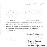 - Oath of office of Brian Casey as a Firefighter of the City of Cambridge.