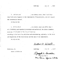 - Oath of office of William Wood as a Fire-fighter of the City of Cambridge.