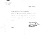 - Appointment of William H. O'Leary, Asst. City Treasurer, as Temporary City Treasurer Collector.