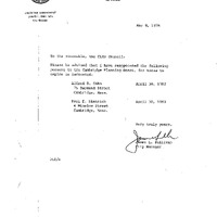 - Reappointment of Alfred B. Cohn and Paul E. Dietrich to the Cambridge Planning Board.