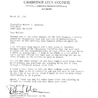 - Letter of Resignation from Richard McKinnon, Admin-Asst. to the Cambridge City Council
