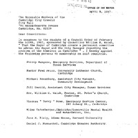 - Comm. from Mayor Walter J. Sullivan Re: notification of his appointment of nine members to a permanent committee to advise both the Mayor & the City Manager Re: the problem of the homeless in Cambridge.