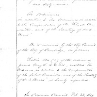 - An ordinance in addition to "an ordinance in relation to the compensation of the School Committee and of the Secretary of School Board".