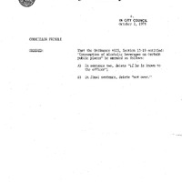 - C. Frisoli re: amending Ordinance #825, Section 13-19 entitled "Consumption of alcoholic beverages on certain public places."