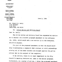 - Agenda Item No. 8 Re: re-submittal for consideration of the Council an opinion of the City Solicitor & a proposed amendment to Ordinance 1018 of the General Ordinances relating to the Police Review & Advisory Board in Section 12, entitled "Criminal Prceedings or Civil Litigation".