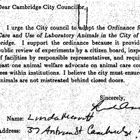 - Comm. from Joseph E. Connarton, City Clerk, transmitting 12 comm.'s & a petition signed by 2,062 individuals recording their support for the proposed ordinance concerning the care & use of laboratory animals in Cambridge