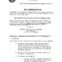 - Ordinance no. 955, use of recombinant DNA technology in the City of Cambridge