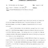 - Interoffice correspondence from Joseph Connarton, City Clerk, to the City Council regarding proposed recodification of the general ordinances.