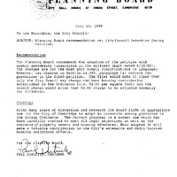 - Report Committee on Ordinances Re: petition of the Planning Board to amend the Zoning Ordinances regarding InCentive Zoning : said amendment would require developers of commercial projects of more that 30,000 sq. ft. seeking a Speciaql Permit to make a contribution to the creation & reservation of Hopusing Particularly affordable housing