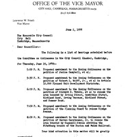 - Comm. from Councillor Frisoli, Chairman of the Committee on Ordinances, outlining the hearing schedule for five zoning amendments.