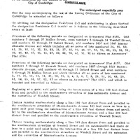 - Petition of Peter H. Desmond et al to amend the Zoning Ordinance by striking out the designation Res. C-3 and substituting in place thereof the designation Res. C-1 in the area bounded by Mellen St., Wendell St., Oxford St., Mass. Avenue and Everett St.