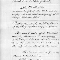 - An Ordinance in amendment of an ordinance concerning the care and management of the bridge charitable fund