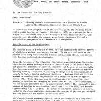- Re: Planning Board's recommendation on a petition to rezone land in the area of Arlington, Lancaster, and Linnaean Sts.