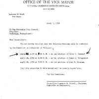 - Comm. from C. Frisoli, Chairman, Comm. on Ordinances, transmitting a hearing schedule for the petitions of Peter H. Desmond, James J. Fitzgerald and John Riseman.
