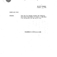 - C. Crane re: comprehensive zoning plan for the entire city.