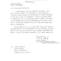 - Comm. from Terry Crystal, on behalf of the East Harvard Square Neighborhood Assoc., requesting that the Planning Board reopen the entire matter of the Zero Arrow Street project.