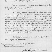 - Ordinance to prevent racing and immoderate driving of horses on the streets of the City.